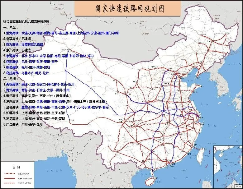 《中长期铁路网规划》中“八纵八横”规划图