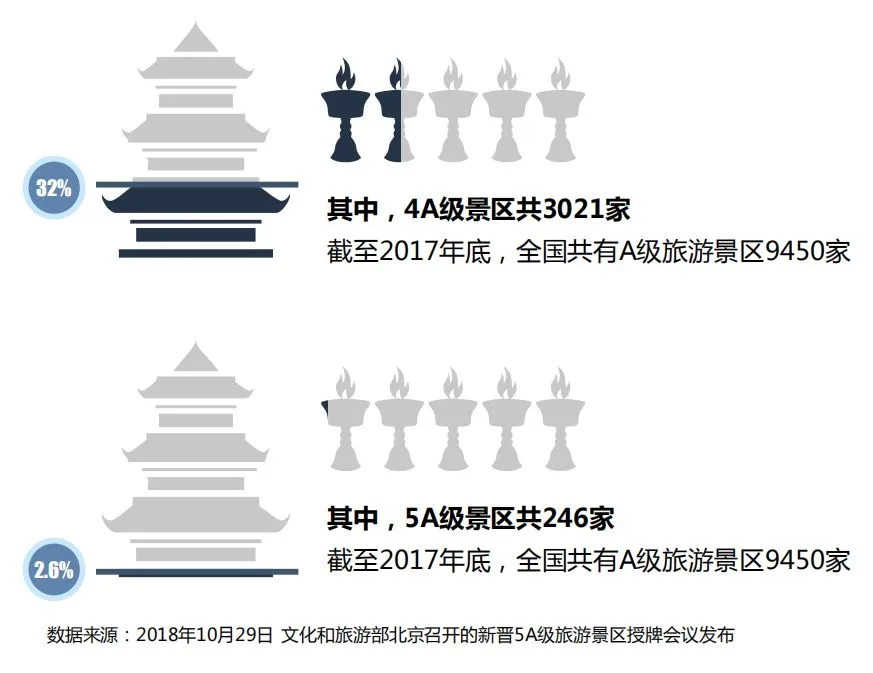 根据文旅部在2018年第四季度例行新闻发布会内容,截至10月,各地已有981个景区实施免费开放或降价措施(免费开放74个,降价907个),其中5A级景区159个,4A级景区534个。另外,驴妈妈旅游网创始人洪清华曾说过80%的景区不赚钱,可见,随着消费升级,传统景区转型升级迫在眉睫。