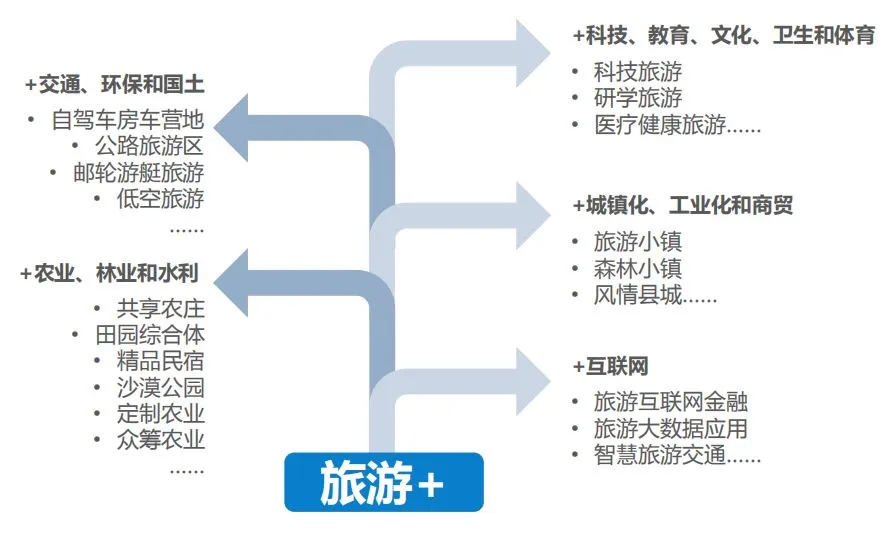 随着文化旅游部的成立,以“旅游+”为主要发展模式的旅游产业跨界融合已经成为未来旅游产业结构调整的重要方向。休闲旅游一方便标志着游客休闲方式的转变,另一方面是旅游产业内部由观光向休闲度假的转变。
