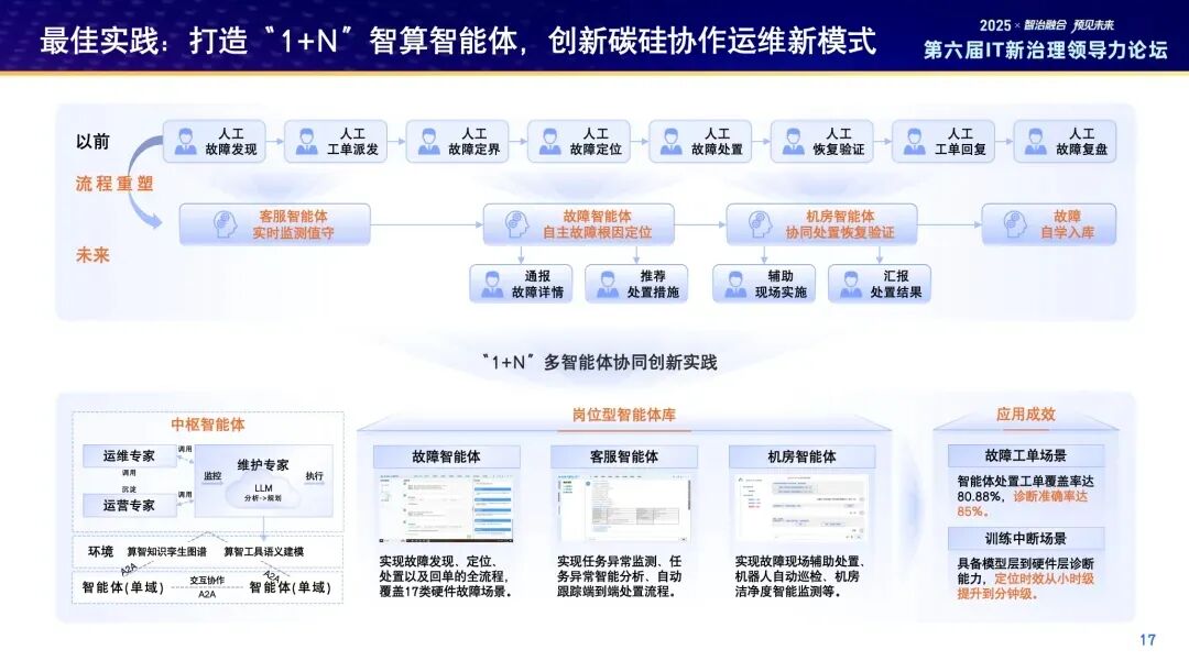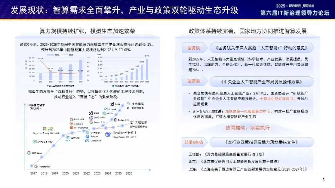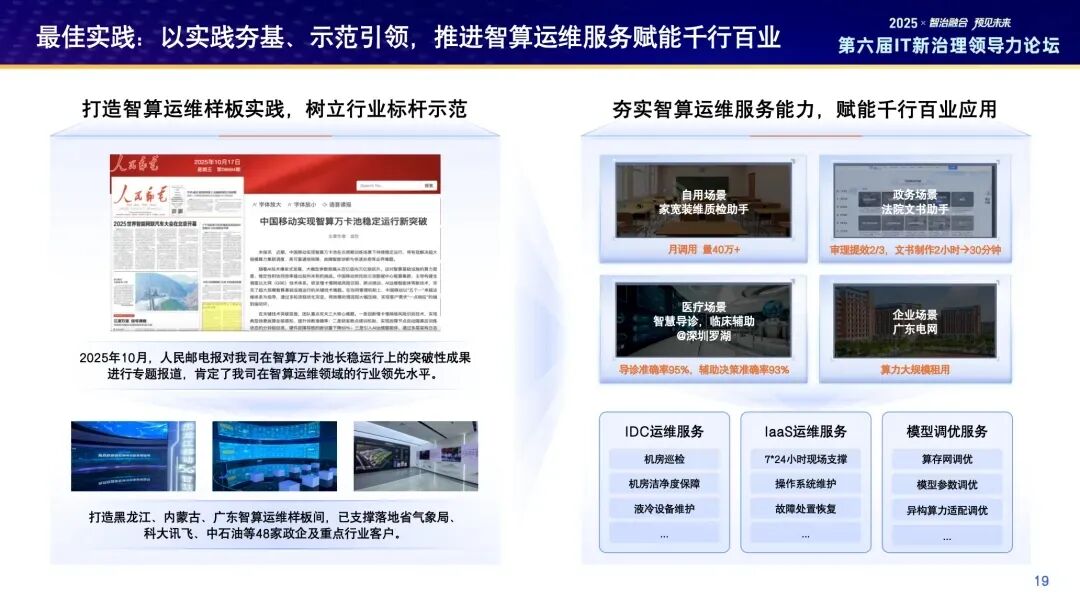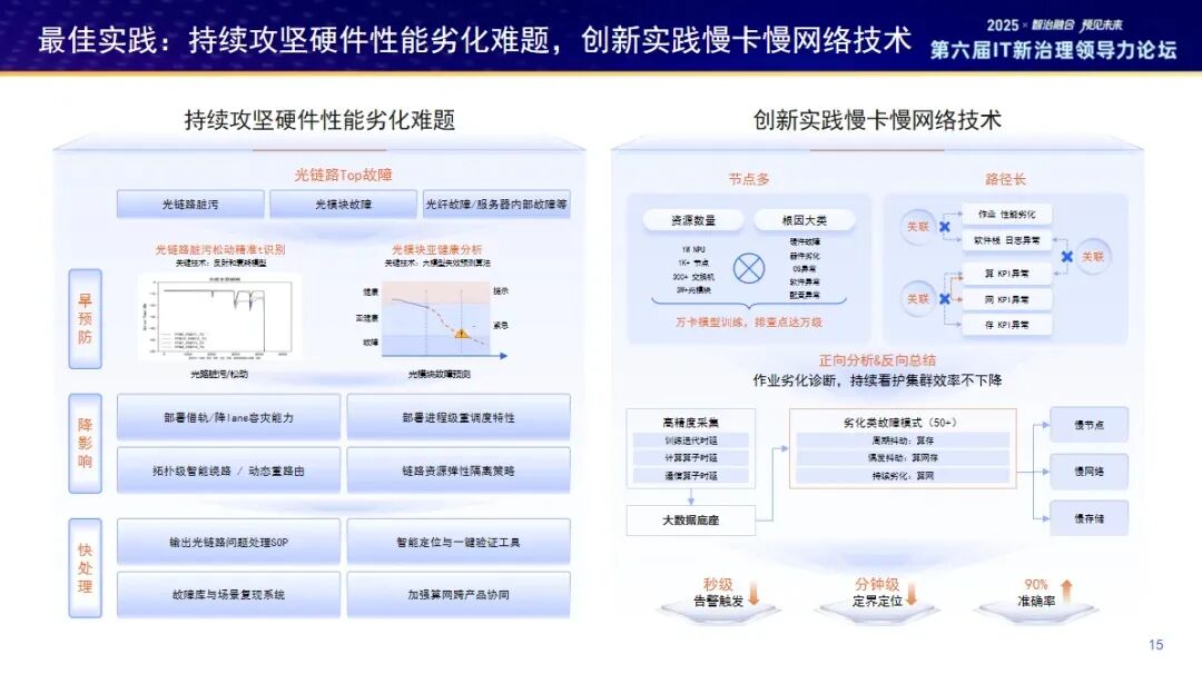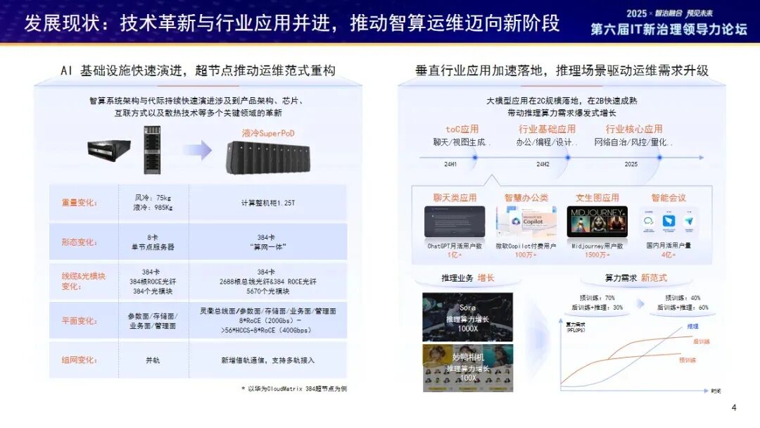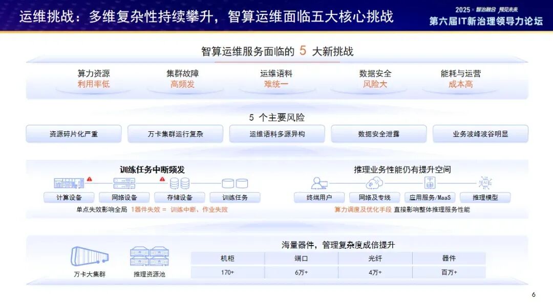 会上,中国移动集团网络事业部处长蔡旭辉先生解读了《智算运维产业发展研究报告(2025)》。蔡处长深度解析智算基建加速建设新态势,讲述了智算运维新阶段的机遇与挑战;梳理产业发展现状与技术框架,重点分析算力调度、智能运维、数据治理、安全防护、能效保障等关键领域的运维服务能力建设方向,描绘服务体系演进路径与核心抓手,同时前瞻未来趋势,提出规模化、智能化、绿色化服务新模式,并分享了中国移动的创新实践与成果,为行业合作、技术进步及运维能力提升提供了参考。