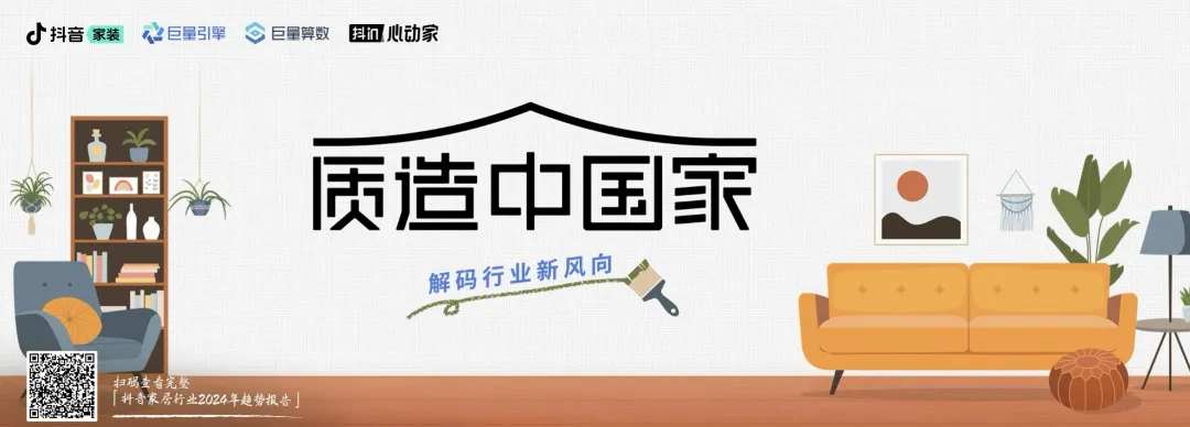 抖音家装风向标IP「质造中国家」给出了答案。此次,抖音家装、抖音电商联合巨量算数,发布「家居行业2024年趋势报告」,旨在揭示家居市场与营销新趋势,为家居企业提供发展洞见,助力线上线下融合,实现稳健增长。