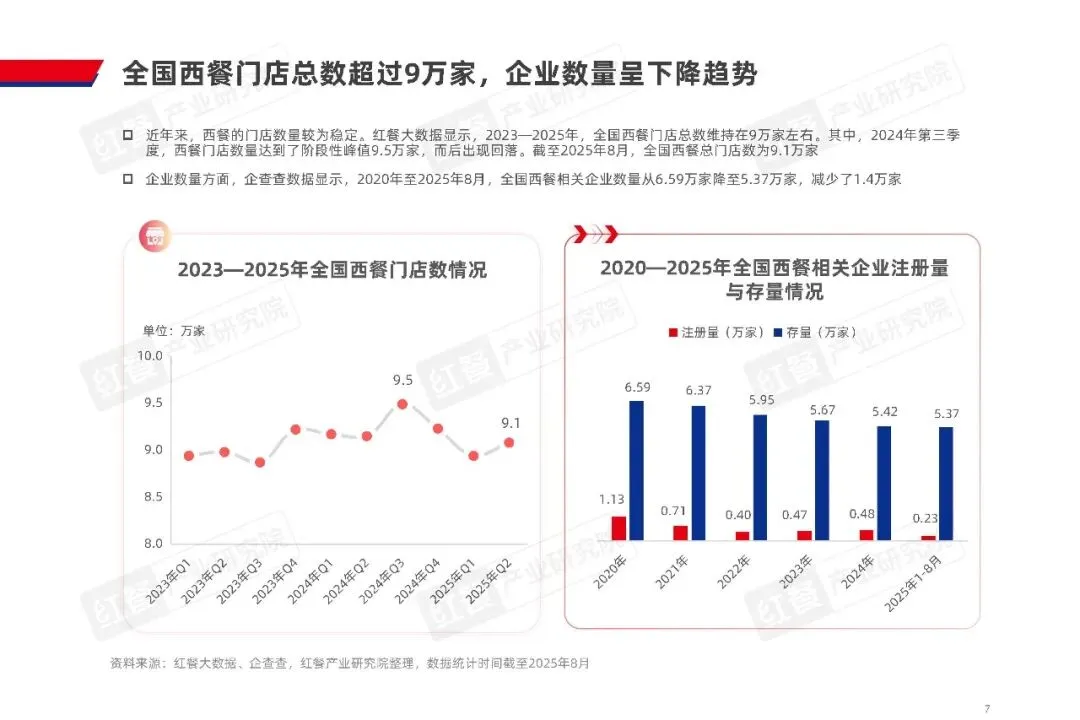 从小众尝鲜到日常消费,从高端会所到社区门店,西餐已深度融入中国餐饮市场,成为多元化消费场景中不可或缺的重要组成部分。数据显示,2025 年中国西餐市场规模预计达到 820 亿元,全国门店总量稳定在 9.1 万家,平价化、连锁化、区域集中化成为行业核心发展特征,市场正迎来前所未有的深度变革。