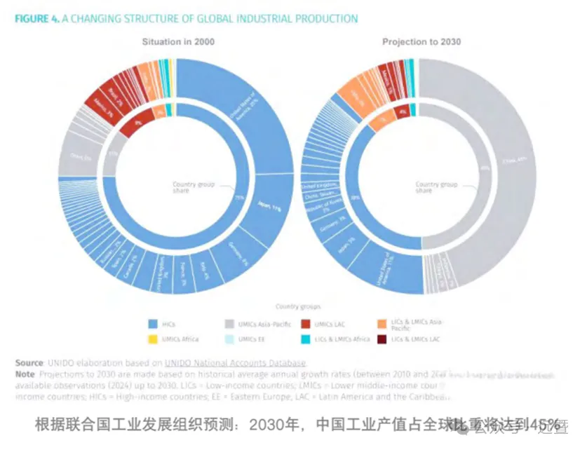 图3:2000-2030(预测)全球主要国家工业产值占比