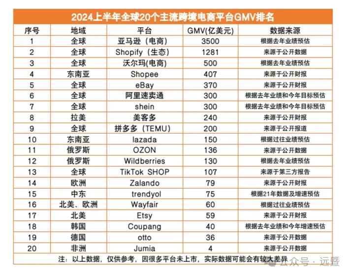 图2:2024年上半年全球主要跨境电商平台规模排名