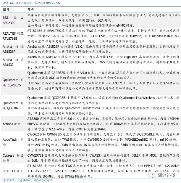 各大芯片厂商也纷纷顺应TWS无线耳机的趋势,推出了一系列支持TWS无线蓝牙耳机的产品。