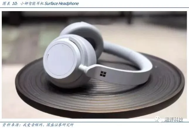 2018年10月微软首次发布了旗下第一款智能耳机设备Surface Headphone,内置智能助理Cortana(小娜)。它是一款无线蓝牙耳机,具备4个降噪麦克风。耳机为浅灰色,重0.64磅(约290g),续航时间15小时,能提供主动互动引导、阅读邮件,以及语音交互启动电话会议。