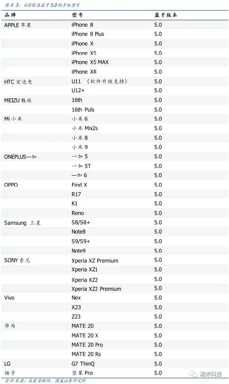 蓝牙5.0的高传输带宽也让TWS真无线蓝牙耳机的双边通话成为了可能,目前市面上主要几款使用蓝牙5.0手机型号如下: