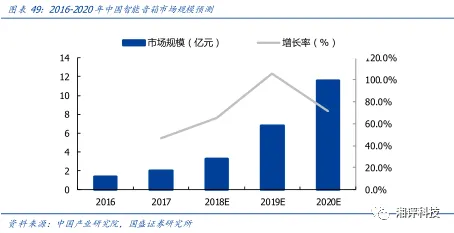 智能音箱一直被视为智能家居入口,在家庭场景下,TWS耳机可以作为声音交互的辅助入口,形成智能音箱+TWS耳机入口闭环。根据中国产业研究院统计分析,中国智能音箱市场规模呈现上升趋势,预计在2020年将达到11.6亿元,2016年至2020年间同比增长率为46.8%~105.6%。