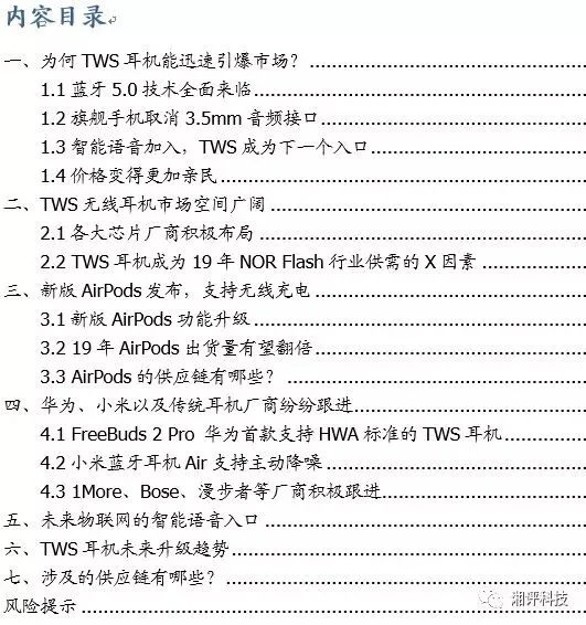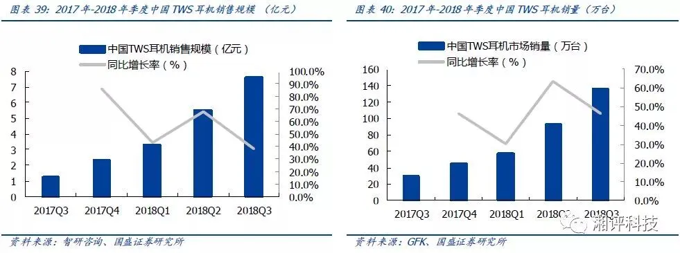 随着旗舰手机逐渐取消3.5mm接口以便实现轻薄化的趋势,续航、传输、音质、价格等痛点得到了改善,对整个TWS耳机市场的放量带来了巨大的成长空间。
