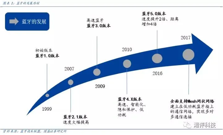 自 1998 年来,蓝牙协议已经进行了多次更新,从音频传输到以低功耗为主打的物联网数据传输。