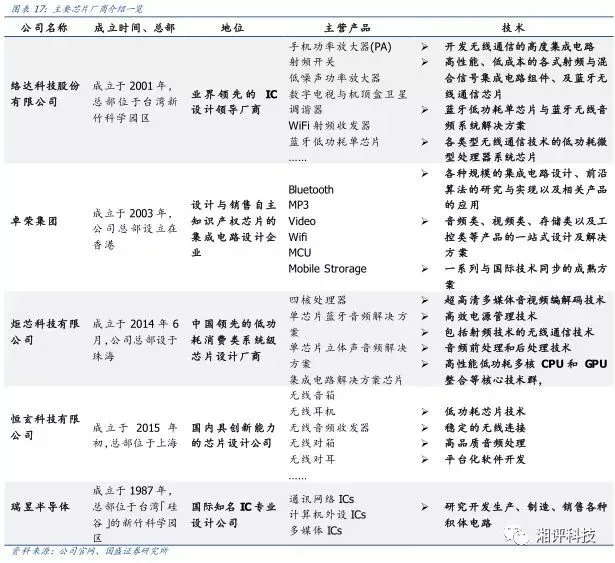 此外,蓝牙mesh技术的成熟,也为未来的IOT带来更大的想象空间。各大芯片厂商也纷纷顺应TWS无线耳机的趋势,推出了一系列支持TWS无线蓝牙耳机的产品。
