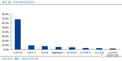根据ZDC的数据显示,目前市场上对无线耳机的关注度高达68%,远远高于其他功能的关注度。同时,之前制约真无线耳机发展的续航、传输、音质、价格等痛点都出现了较大的边际改善。