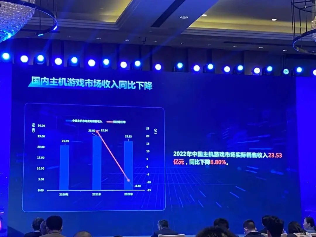 由于2022年新产品上线数量和表现弱于上年,中国主机游戏市场实际销售收入23.53亿元,同比下降8.80%。
