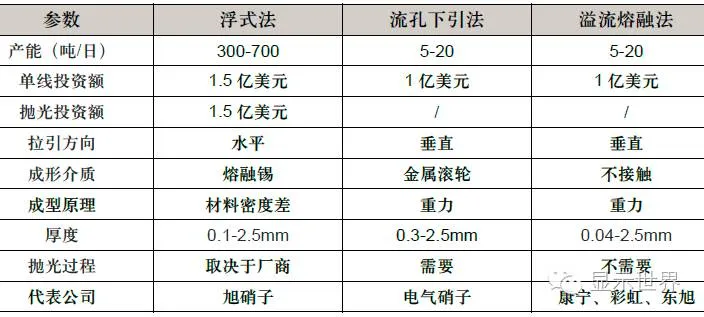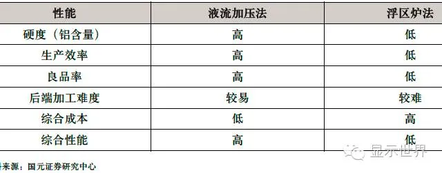 从生产工艺看,目前盖板玻璃主要有两种生产方法:液流加压法和浮区炉法,康宁使用的液流加压法,日本旭硝子和电气硝子采用的都是浮区炉法。总体来看,液流加压法技术较浮区炉法存在明显技术优势。