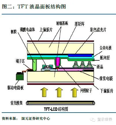 通常的液晶面板按照结构划分包括偏光板、玻璃基板、彩色滤光片、配向膜、液晶材料、光学膜片、IC驱动电路等部分组长。