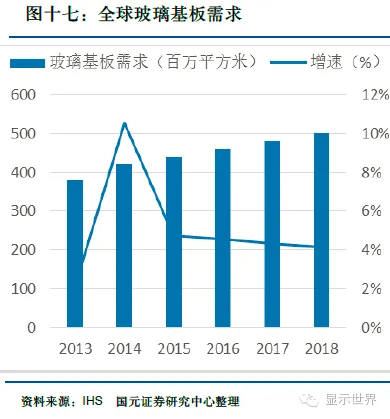 需求端:得益于液晶电视平均尺寸的提升,预计从2015年到2018年玻璃基板面积需求将以年平均4.5%的增速增加。