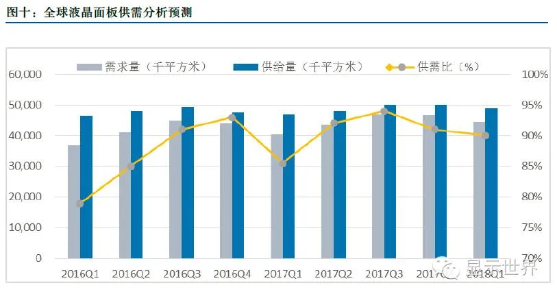 长期面板产能过剩的预期并不能掩盖一段时期内面板短期的局面。进入2016年,在市场一致看空面板行业的背景下,从二季度开始市场明显出现了供给偏紧,供需比已经从1季度的低于80%上涨到3季度的90%以上。根据IHS的预计,市场偏紧将会在2017年表现的更为明显,并将延续到2018年。