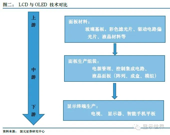 玻璃基板是液晶面板上游核心部件。要了解玻璃基板产业,首先要把握整个液晶面板产业链。液晶面板产业链分为上游、中游、下游三部分。上游主要是面板材料生产;中游是面板生产组装;下游是显示终端生产。