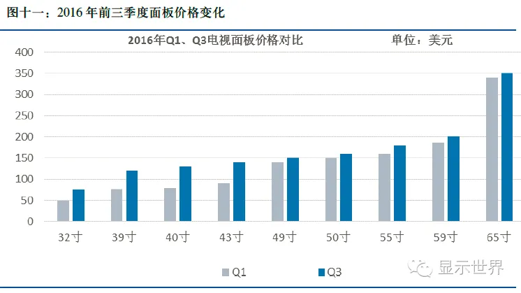 面板出货量减少带来的直接结果就是今年下半年价格的明显上涨,根据群智咨询统计,国内32-43英寸中小尺寸面板价格半年上涨了约40%,49英寸大尺寸价格半年约上涨10%左右,预计此轮价格上涨有望维持到明年。