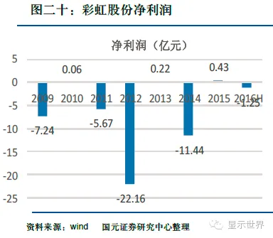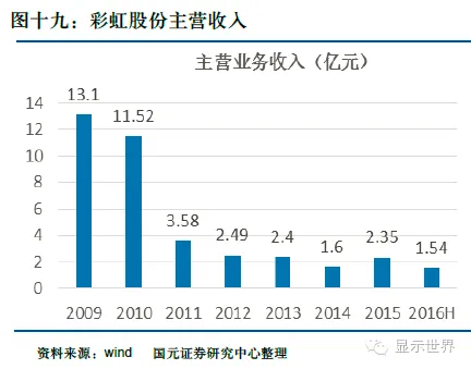 公司在2012 年彻底完成了彩管业务的剥离,全面投入到玻璃基板行业,但几年来公司在新型显示器件领域步履艰难,基本上处于亏损或者微利的状况。