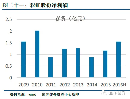 2015 年玻璃基板市场竞争依旧激烈,G5 代玻璃基板的价格已经从2013 年的300 元一张跌落到2015 年的100 元一张,公司存货水平依然处于高位。