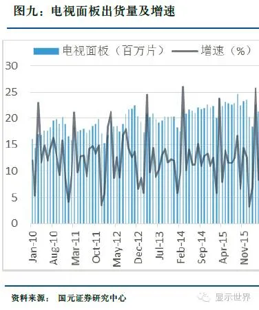 面板出货量的减少在中小尺寸领域更为明显,除了京东方和华星光电外其他几乎所有的面板厂商都在缩减中小尺寸供应量。根据IHS的预测2016年32寸面板的出货量有望达到7850万片,相比于2015年的9250万片将出现大幅度减少。