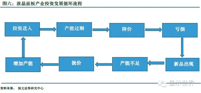 面板产业是个典型的高技术壁垒(生产线代数不断提升)、高资金投入(高世代线投入资金巨大)行业。一般情况下进入行业后随着资金投入的加大,将要面对的是产能过剩、降价、亏损、新技术新市场被开发出来、产能不足、市场提价,再投入增加产能等一个循环过程。整个面板行业基本上很难有比较好的退出模式,通常都是采用直接关停的方式去产能。