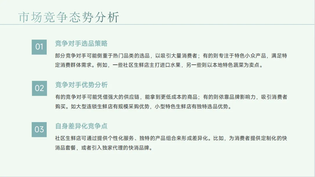 市场方面,2020 年社区生鲜市场规模已破 5000 亿元,预计 2025 年有望突破 7000 亿元,线上渠道增长迅猛。区域分布上,一线城市市场成熟,二三线城市及农村市场潜力巨大。竞争格局呈现传统零售企业、电商巨头与初创公司三足鼎立之势,各凭借自身优势占据市场份额。