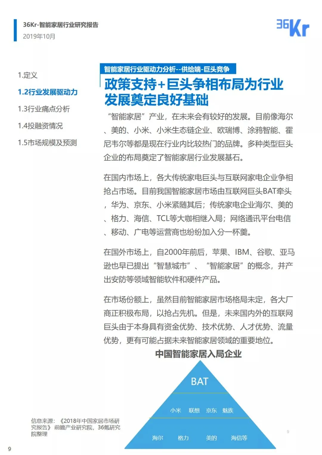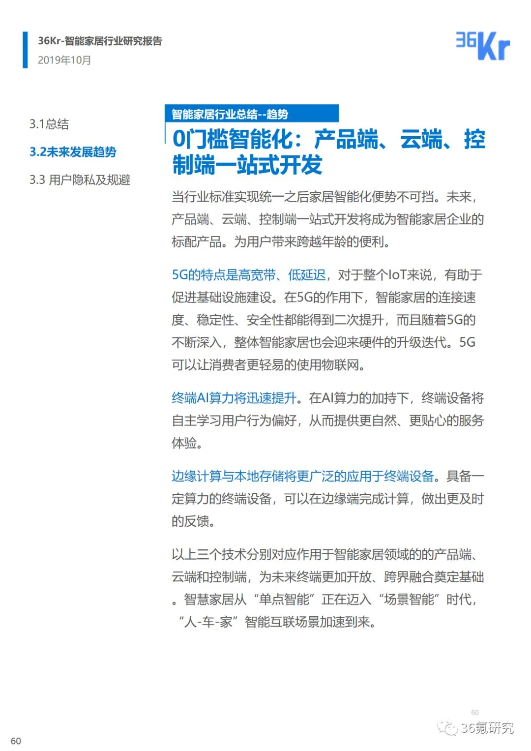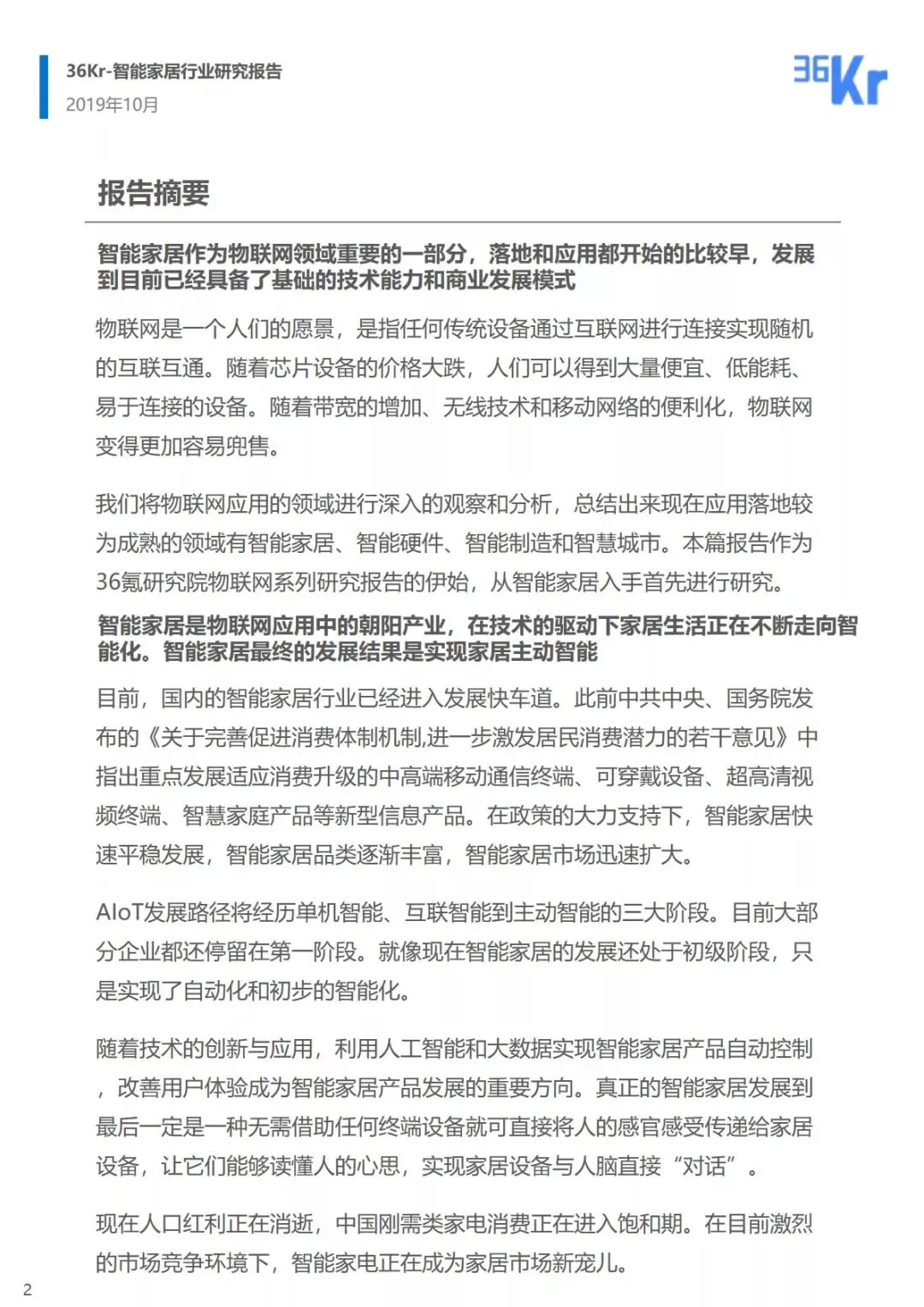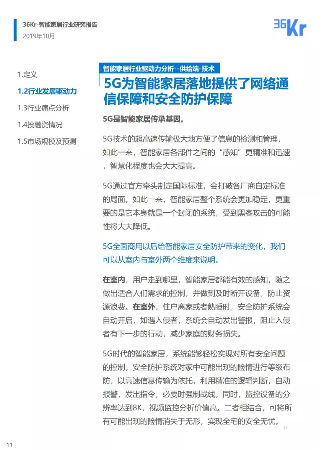 以下为《5G时代下的智能家居竞争格局》36氪智能家居行业研究报告全文。