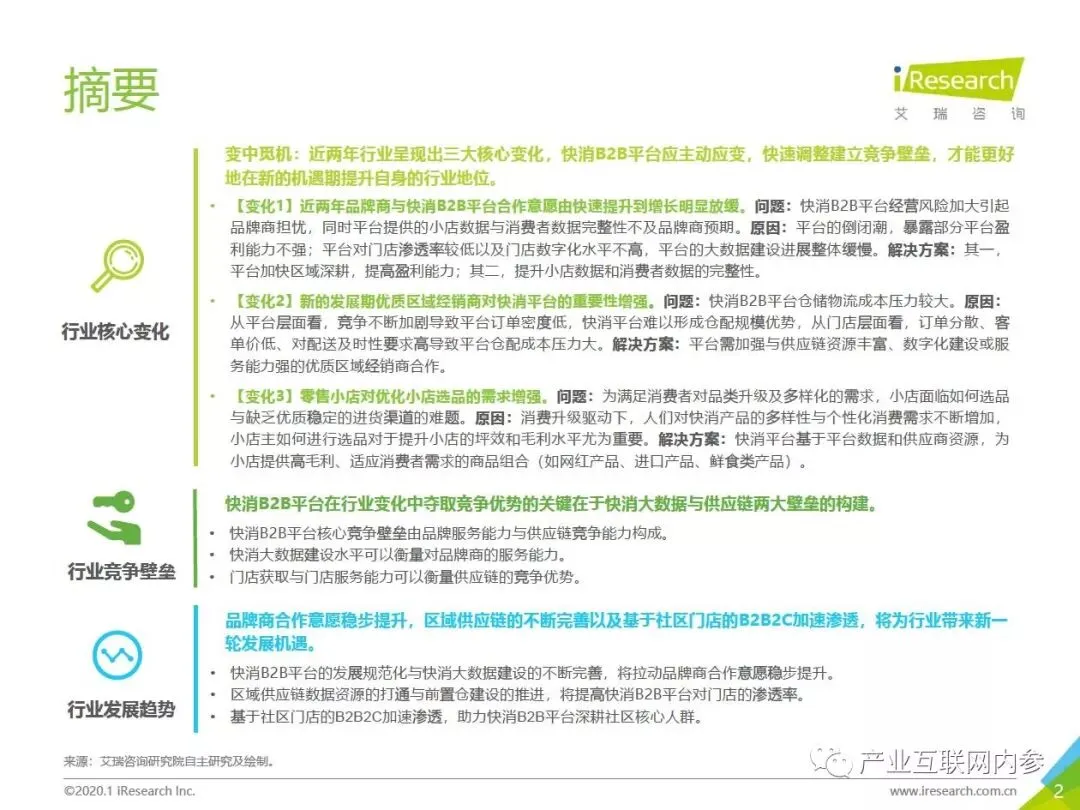 报告对快消品B2B行业发展中的核心变化及新机遇的把握进行系统地研究。通过行业三大核心变化以及相应行业问题的系统分析,指明行业问题的解决路径。