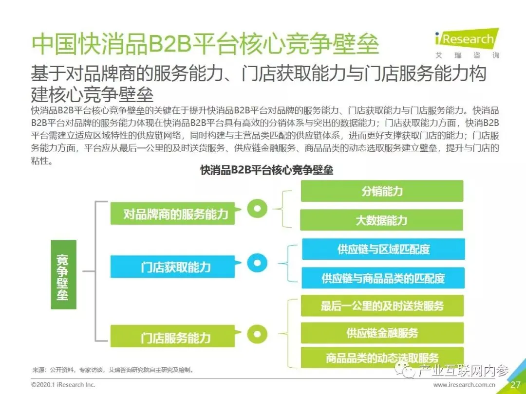 基于此,构建快消品B2B行业的竞争优势分析框架,助力快消品B2B平台更好地在行业变革中建立适合自身禀赋的竞争壁垒,抓住行业深度调整创造的新一轮发展机遇,建立稳健的盈利模式,进而提升自身的行业地位。