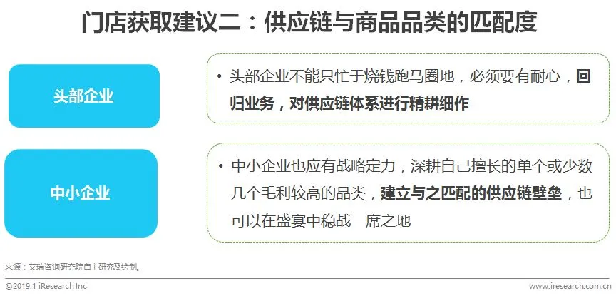 •为了高效地获取门店,快消B2B企业应在破解传统快消通路的阻碍、供应链与商品品类匹配度、以及供应链与区域匹配度三方面,进行重点突破。