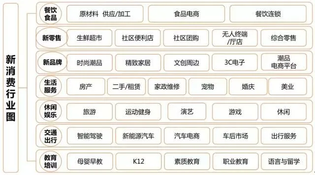简单的说,新消费是以消费者为核心,以满足消费者需求为目的,重构消费者与商家的关系,实现业态整体的全要素升级。相比于以生产者为核心的传统消费,新消费既迎合了消费升级的发展需要,又能够刺激和满足消费者的消费需求!在新消费环境下,餐饮食品、新零售、新品牌、生活服务、休闲娱乐、教育培训、交通出行为代表的细分赛道都进入快速发展的时期。在细分赛道下,围绕着品牌、渠道、场景和技术诞生了大量的创新创业的机会,孕育了巨大的增量市场!再加上消费者对产品的品质和体验更加的重视,因此,“新消费”正在成为企业关注的重点。第一、尽管社会对“消费升级”和“消费降级”存在争议,但真相其实是中产的分化导致购买力也出现两极化。高净值收入人群要求“极致体验”,而普通群众则要求“高性价比”产品。具体来说,以路易威登、香奈儿、卡地亚为代表的奢侈品牌销量不断增长,以拼多多和名创优品为代表的平民企业也能够保持着旺盛的生命力。第二、全民进化时代的圈层裂变,衍生出了一系列“她经济”、“他经济”、“它经济”,消费行为被赋予更多的场景。比如,快时尚潮品市场;比如,智能驾驶市场;比如,宠物市场!第三、生态重构下的去中心化,导致简单的消费供应链走向复杂的多主体产业生态。这一点很好理解,最具代表性的就是“阿里生态”和“腾讯生态”。甚至连小米,也随着生态链的不断扩张,如今也迫切需要补上物流这一环。❖