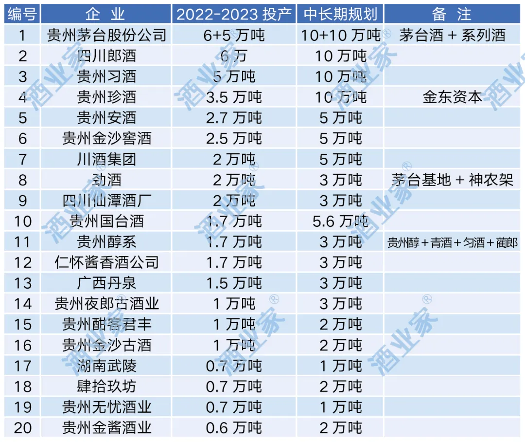 2022年是产能大年,更是酱酒企业产能的分化之年:头部酱酒企业投产提速,二线酱酒企业跟进,中小酱酒减产。