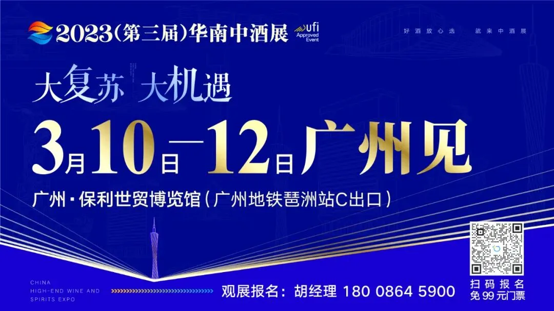 欢迎全国酒企酒商相约广州,见证开年首场行业盛会,抢抓行业复兴关键机遇。即刻报名参加2023(第三届)华南中酒展,免价值99元现场门票。还可提前加入酒行业交流群,现场展商、活动、嘉宾信息早知道。