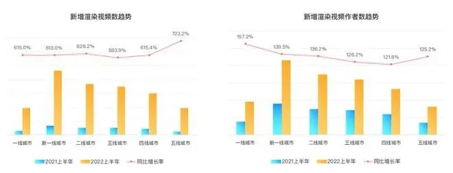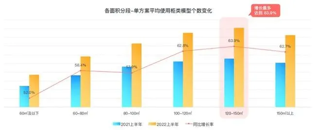 居家隔离、居家办公催化“宅经济”,以家作为生产和生活主要场所的观念日渐扎根,家居家电消费酝酿颠覆性变革。消费者对美好生活方式的向往,带火了一批生活类家电:影音设备、懒人沙发、宠物用品乘势而“涨”,影音设备在家庭中的设计配置相较去年上半年增长超6倍。2022上半年疫情频发也进一步提升了消费者对于居家生活健康和便利的意识:家庭清洁产品是意料之中的刚需,料理机、洗碗机、烤箱、消毒柜等“解放双手”的厨卫家电也备受人们青睐。在远程办公成为新常态的背景下,打印机、电脑桌、咖啡机成为当代白领居家办公首选的三大件。报告显示,需求翻倍增长的咖啡机成为了“现象级单品”,对于爱喝咖啡的人来说,这不仅是能及时喝到咖啡的实用好物,更是提升居家高级感的“氛围神器”。除了居家办公,家庭装修设置电竞房、健身房也正成为一股潮流,在单空间趋势整体分析中是当下增长最快的新功能空间。尤其是电竞房,在家庭功能类新兴热门空间排名独占鳌头,2022上半年同比增长高达314.5%。无论是寸土寸金的北上广深还是在二三线城市,家庭装修绕不开的核心话题就是收纳。报告显示,2022上半年居家柜类模型同比增长显著。不论是⼩户型还是改善户型,柜类模型打造的收纳空间增长迅猛,去年同⽐均增长超过50% 以上。同时,柜类定制比例进一步提升,通过定制模型打造柜类收纳空间占据市场主流,台上柜、书柜、存包柜、功能柜和⾐柜这五大品类,牢牢占据榜单前五,居住⾯积有限,但收纳⽆限。2022上半年全国家装市场主要集中在新一线和二线城市,新增家装设计方案数分别占比27%,20.9%。而在新一线城市中,最为呼唤品质装修住宅的是成都,新增设计方案数全国占比4.5%,超过广州、北京、上海等一线城市,不愧为以“巴适”闻名的最具幸福感城市。承接了新一线城市家庭旺盛装修需求的是在全国占比高达26.8%的新一线城市家居设计师。在活跃设计师人数最高的城市中,中西部地区的成都、重庆和郑州位居前三,与2021年城市商品房住宅销售面积排名基本一致。而设计师活跃率最高的,要属设计服务下沉的四线城市,活跃度高达50.5%。打造差异化设计竞争优势,正成为不少家居企业的营销新思路,渲染视频成家居企业“内容营销”关键。报告显示,设计展示从“看全景图”全面进入到“看视频”的时代,2022上半年新增渲染视频数同比增长超6倍。渲染视频普及化趋势显著,新增渲染视频作者数同比2021上半年实现翻倍增长。新一线城市成为营销视频化领域的“弄潮儿”,在全国所有城市等级中渲染视频产出量最高。抖音、快手等短视频渠道刷到的家居渲染视频,说不定大部分都来自新一线城市。而五线城市新增渲染视频数趋势增长最为迅猛,同比增长723.2%,家居企业数字化“未来可期”。设计到生产的前后端一体化,一如既往是定制家居企业数字化转型的“解题首选”。从设计生产对接使用量和设计生产对接商家数趋势图表看,家居智能智造离不开“设计生产一体化”,2022上半年设计生产对接体量保持高速增长,使用量同比增长166.4%,采用设计生产一体化的商家同比增长31.3%。