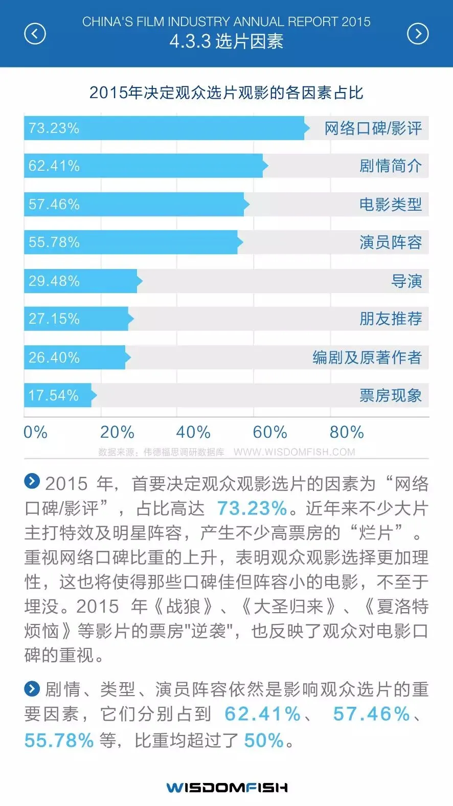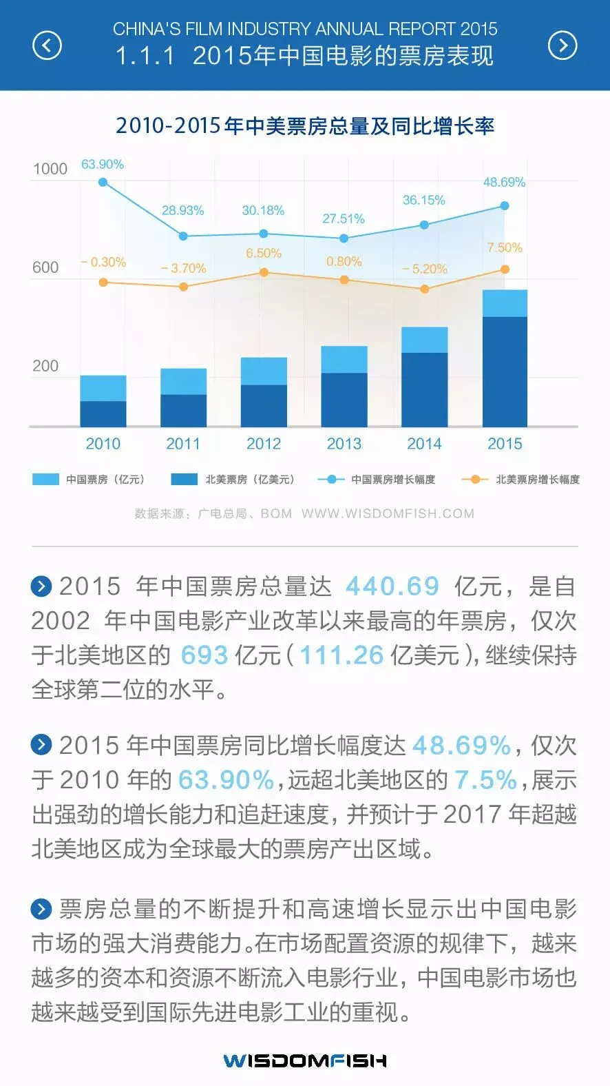 伟德福思发布2015年度中国电影产业报告,转眼已经是伟德福思产出中国电影产业报告的第三年了。以下是2015年精华版报告内容,完整版需自行索取下载,详见文末。