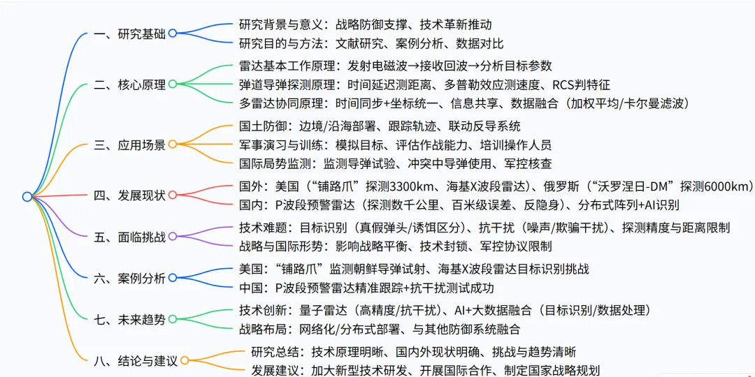 研究目的:全面分析雷达弹道导弹监视技术、系统架构、挑战与趋势,为我国能力提升提供理论与技术参考。 研究方法:文献研究法(梳理技术脉络)、案例分析法(剖析典型系统)、数据对比法(量化性能指标)。
