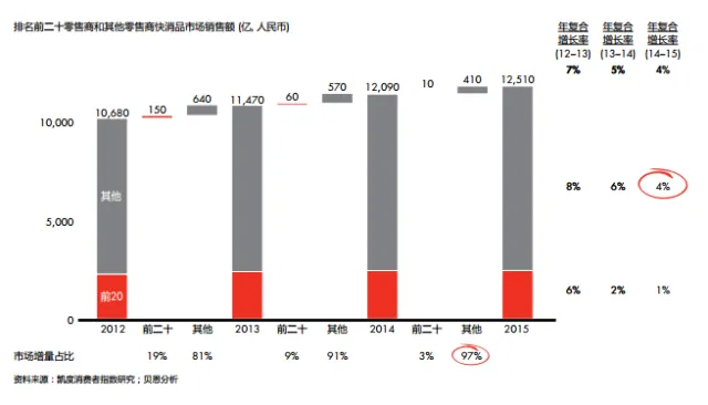 图6:2015年,小型零售商和新兴零售形式是快速消费品增长的重要来源