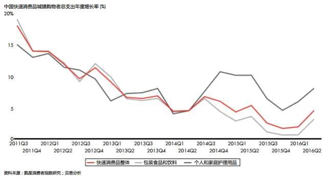 图3:个人和家庭护理用品在2016年第一季度出现微量反弹