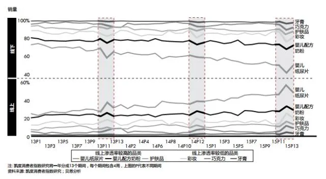 从分析中我们也得到了一些启示。之前所提到的饼干、衣物柔顺剂和洗发水等品类,绝大部分销售支出的增长来源于首次在线上购买该品类的消费者。因此线上促销活动可以帮助该品类获得新的消费者。