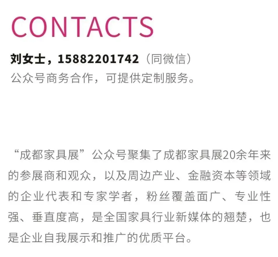 不过,掌握家居行业流行密码,品味品牌设计潮流时尚,体验一站式家居生活解决方案,第23届成都国际家具工业展览会一定是您的首选!