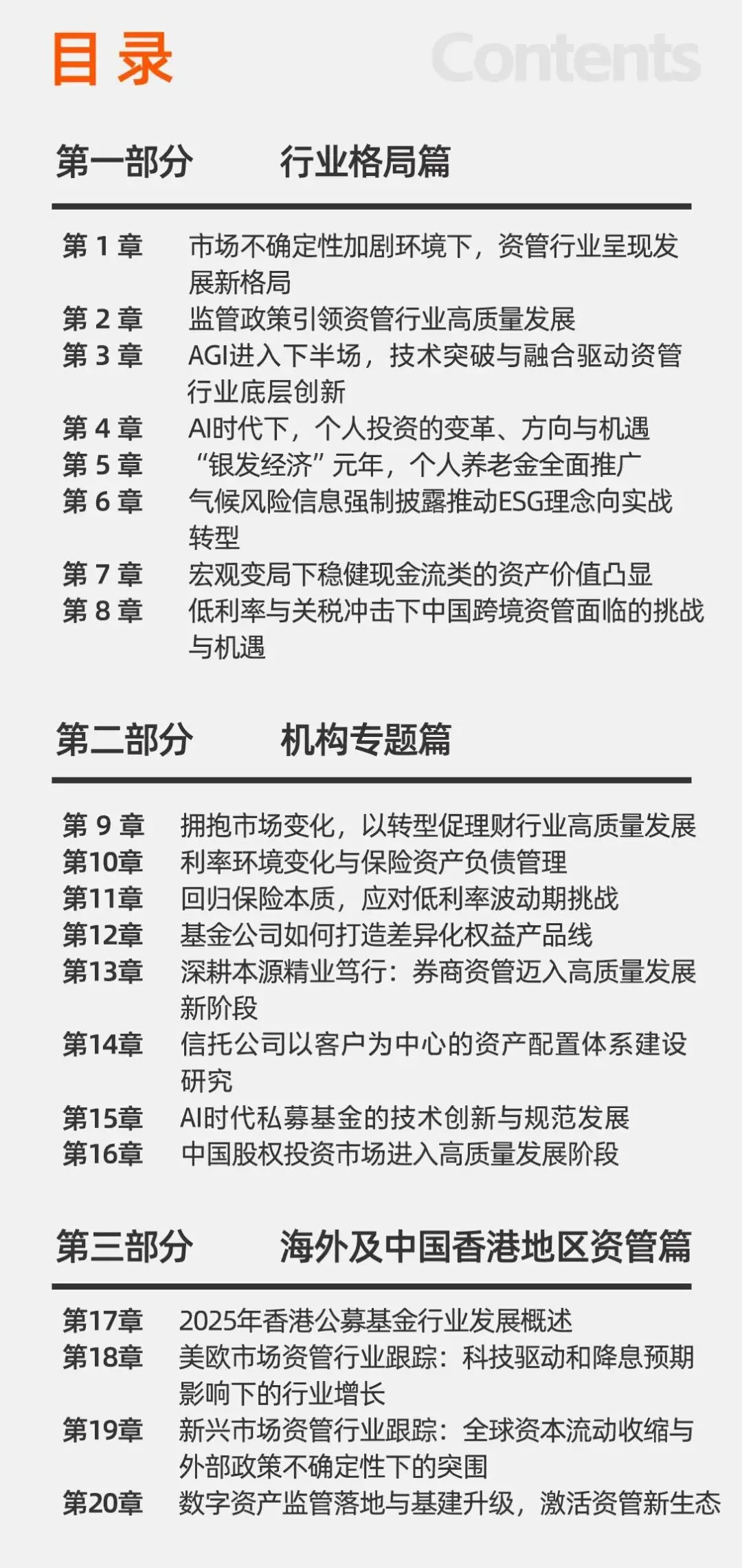 由香港大学经管学院金融学教授、北京大学汇丰商学院金融学特聘教授巴曙松教授率领团队精心撰写、连续二十年权威发布的《2025年中国资产管理行业发展报告》重磅推出!2025年报告以“关税摩擦与AI转型下的中国资产管理行业”为主题,同时邀请交通银行、泰康资产、阳光保险、金鹰基金、东方红资管、五矿信托、康曼德资本、清科研究、香港投资基金公会等机构对行业进行跟踪展望,深度剖析中国资管行业的最新发展趋势!