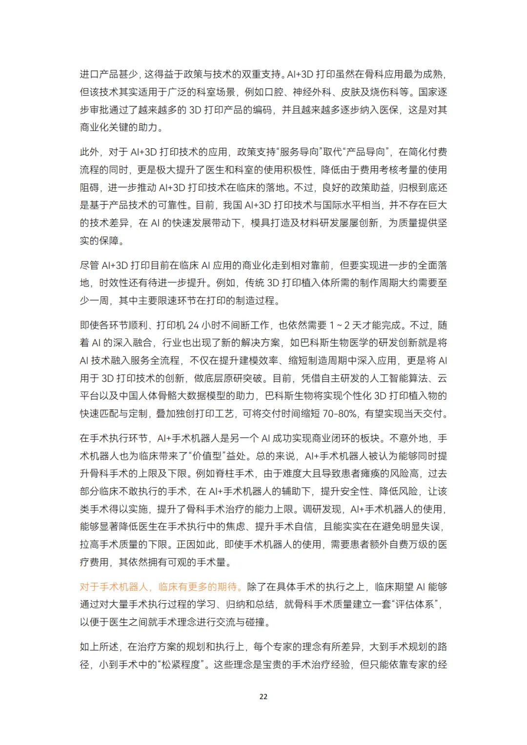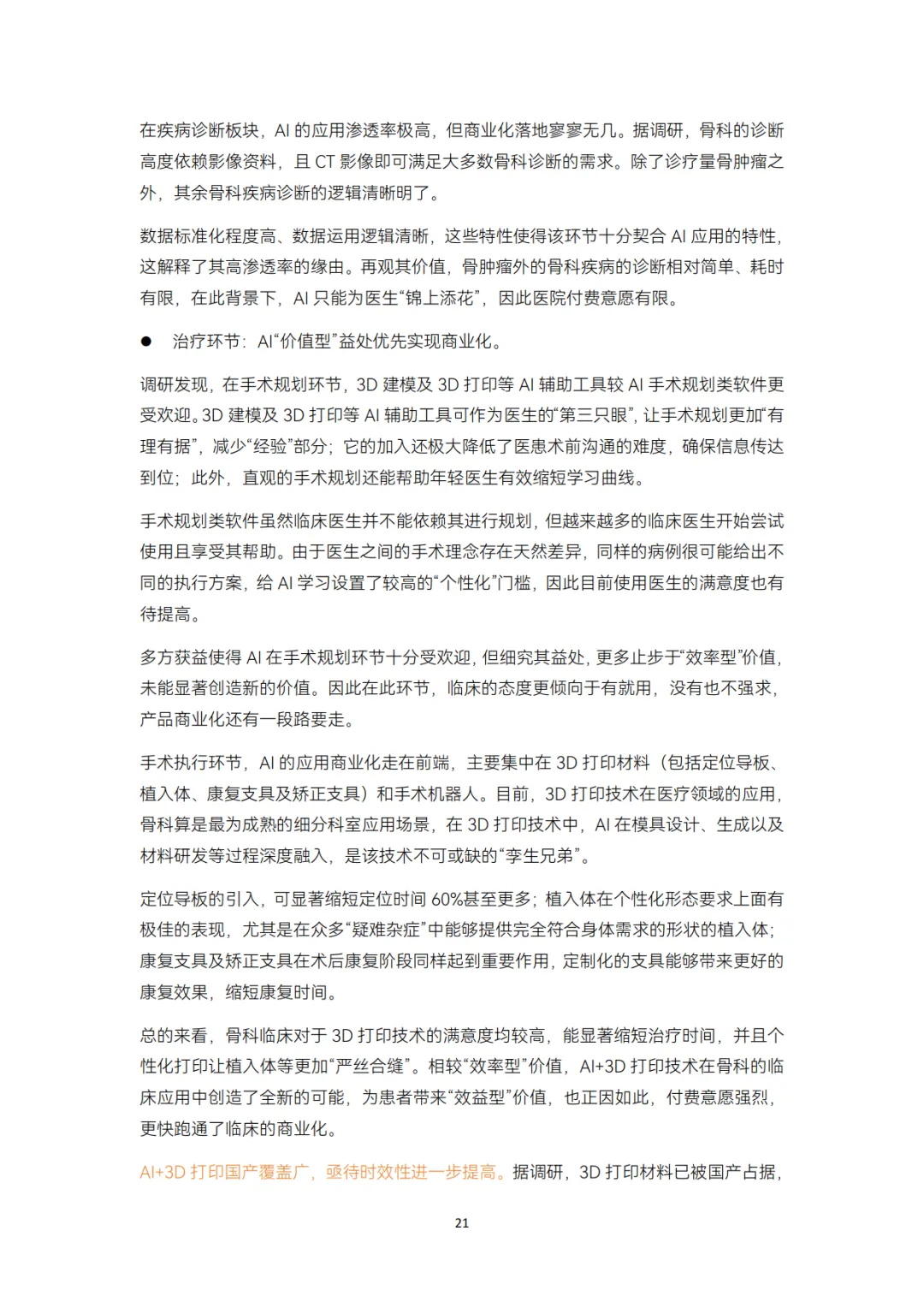 骨科 | 3D打印植入体、手术机器人 | 患者自费模式跑通 |