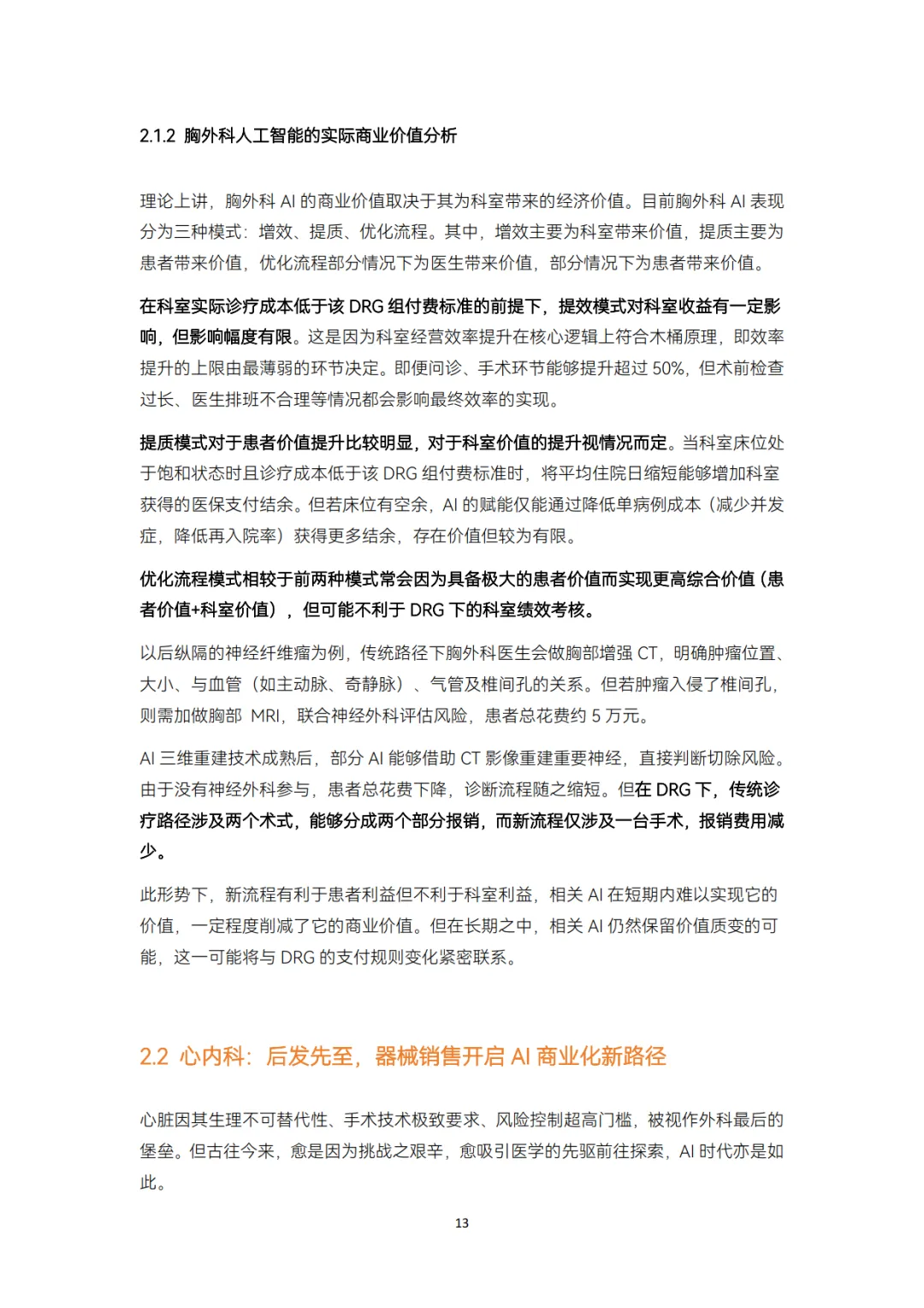 AI提升患者疗效(如缩短住院时间、降低并发症),但可能减少科室收入(如DRG支付下单科室执行原多科室协作项目)。调研显示,仅顶级三甲医院能通过AI实现问诊量增长或成本下降。