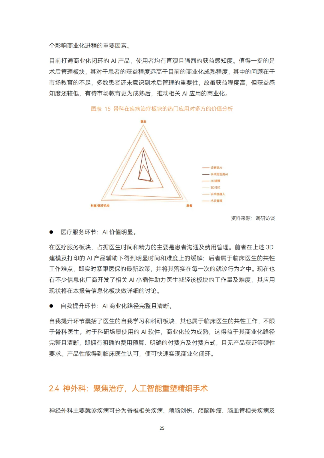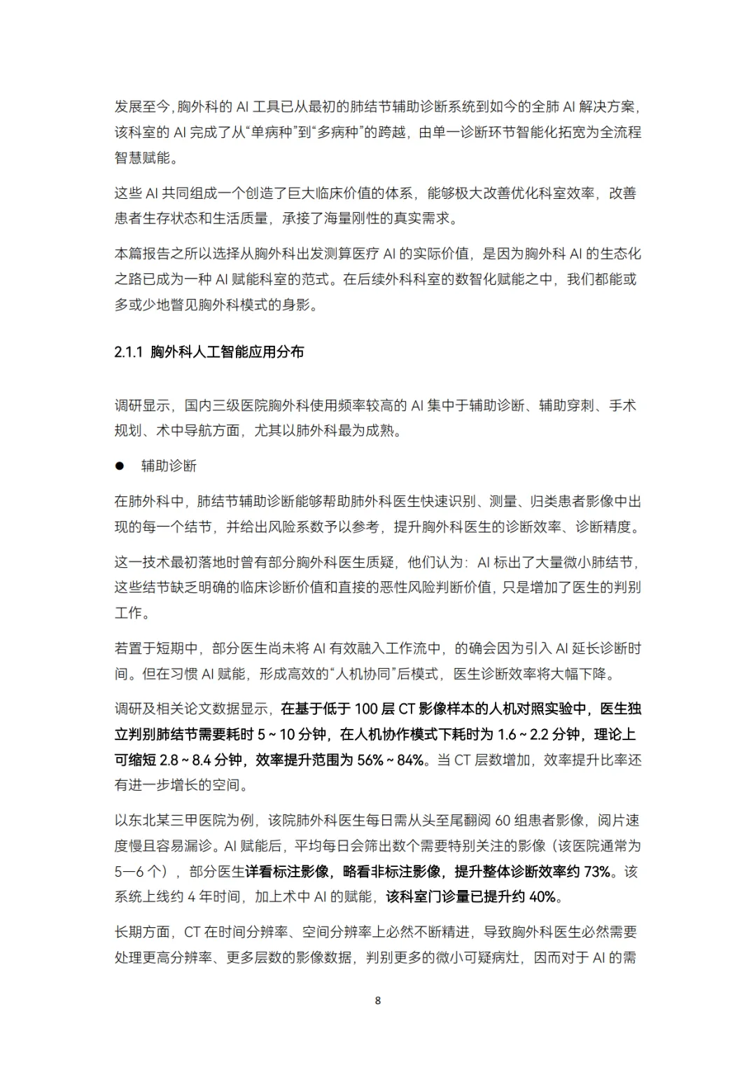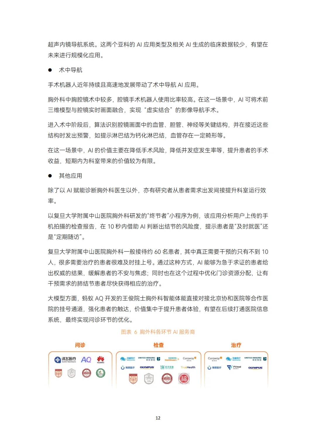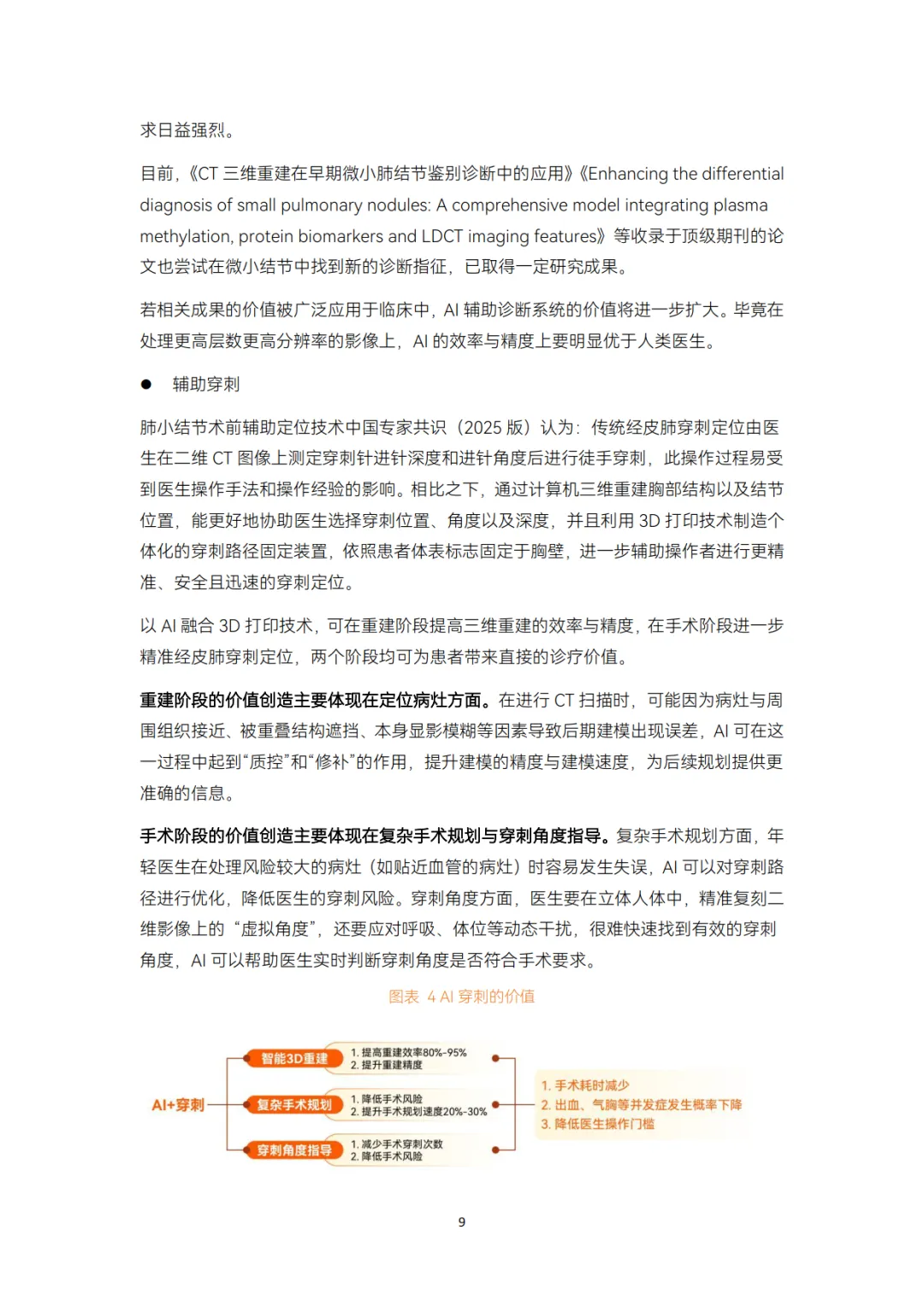 胸外科 | 3D重建手术规划、穿刺机器人 | 技术成熟,但支付方未明确 |