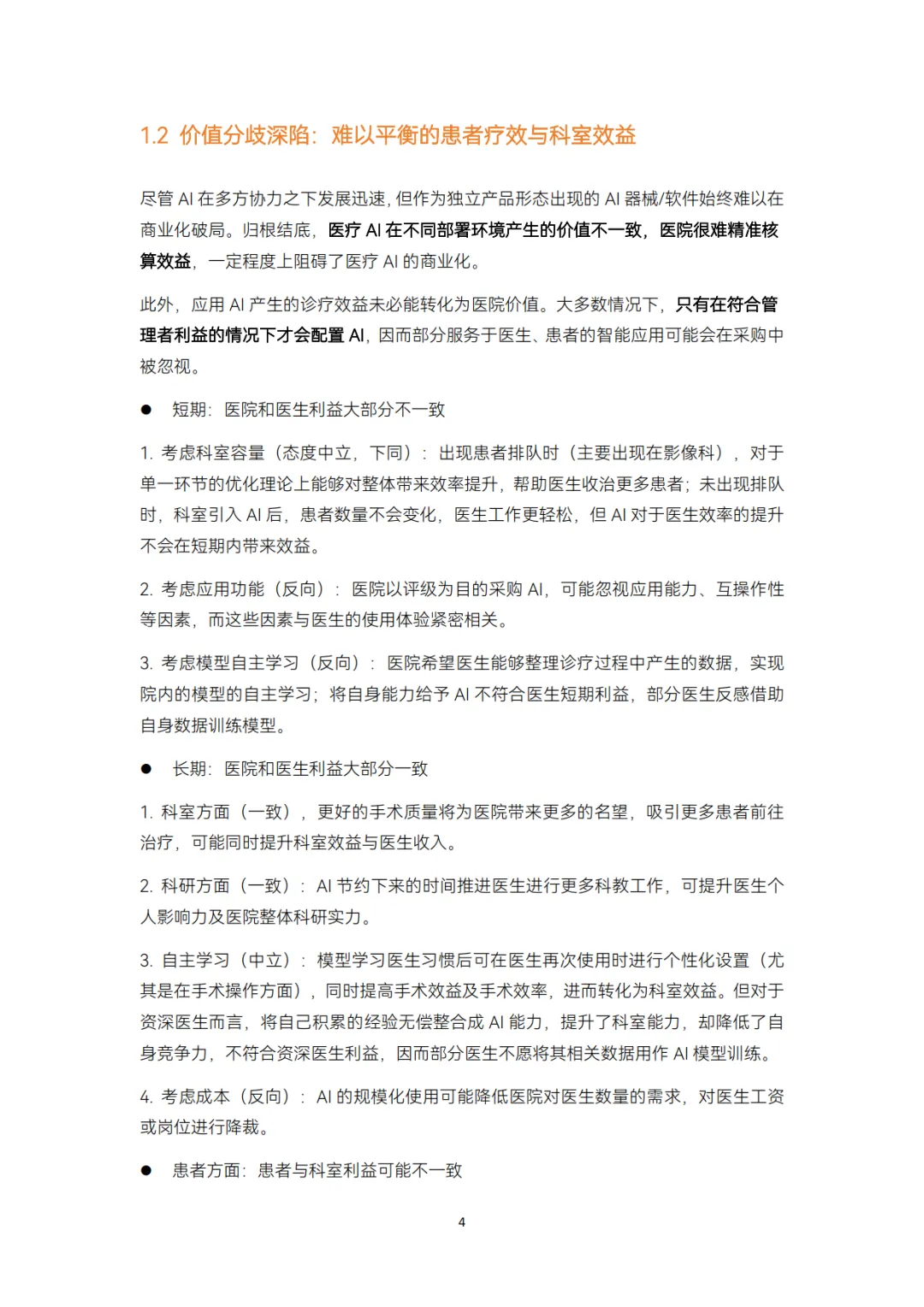 普通医院现金流紧张,更倾向投资回收期短的技术。例如骨科手术机器人需患者自费数万元,而影像AI因缺乏明确付费方难以规模化。