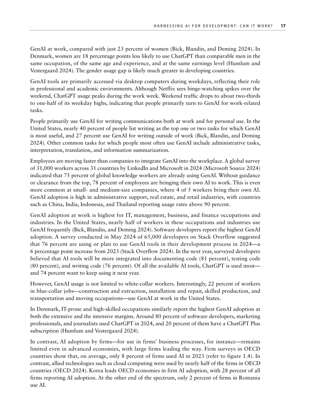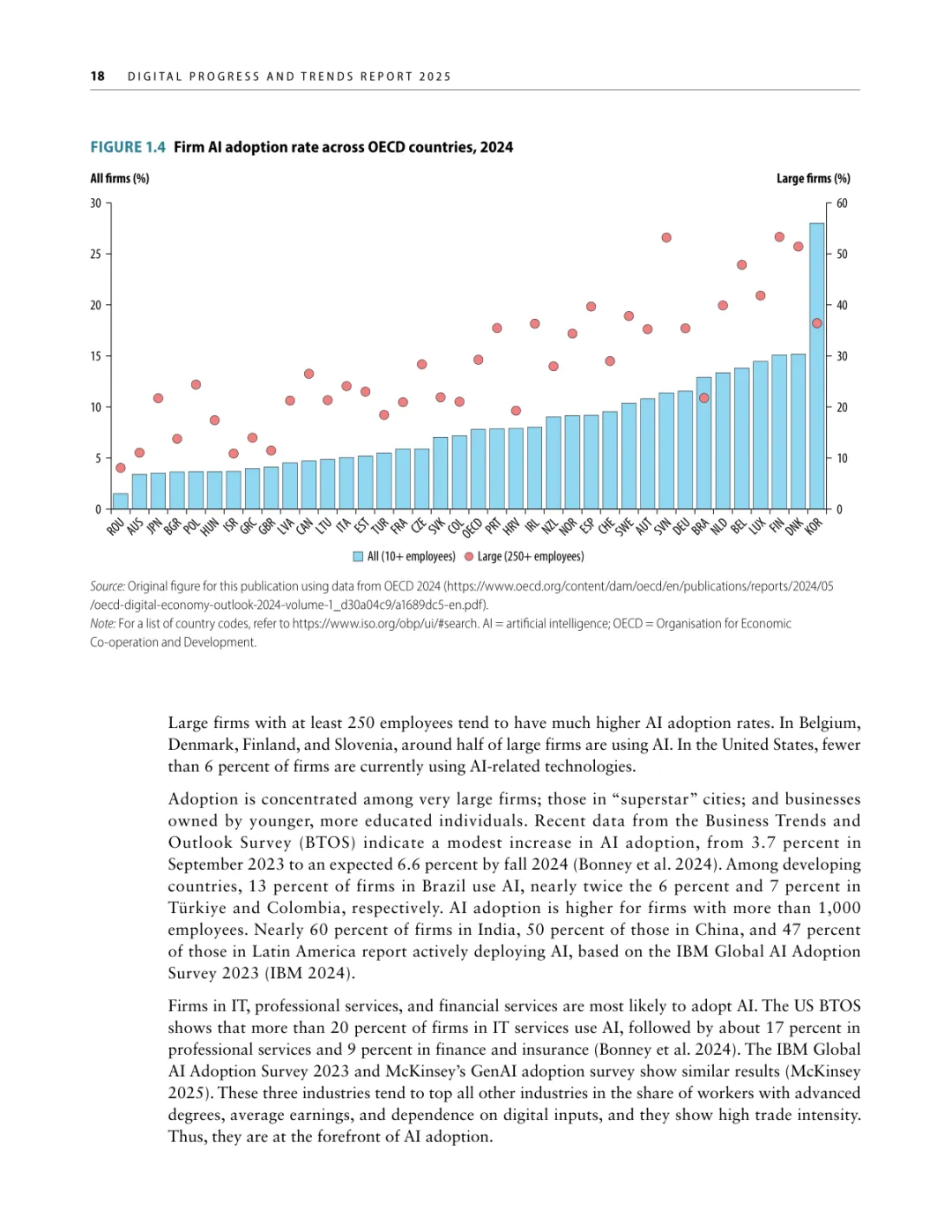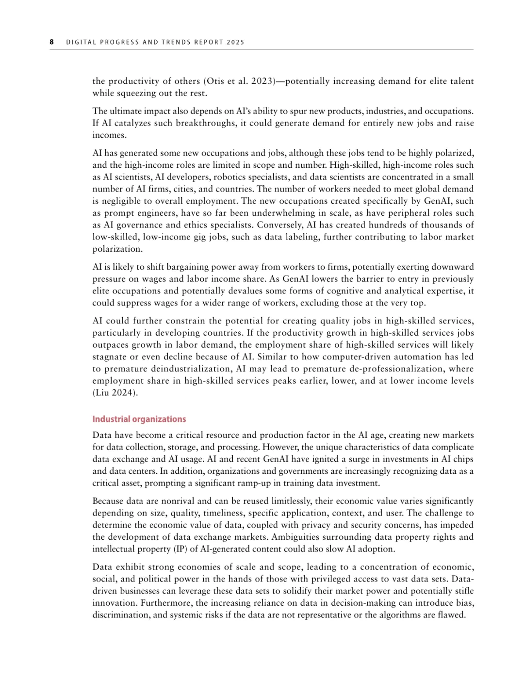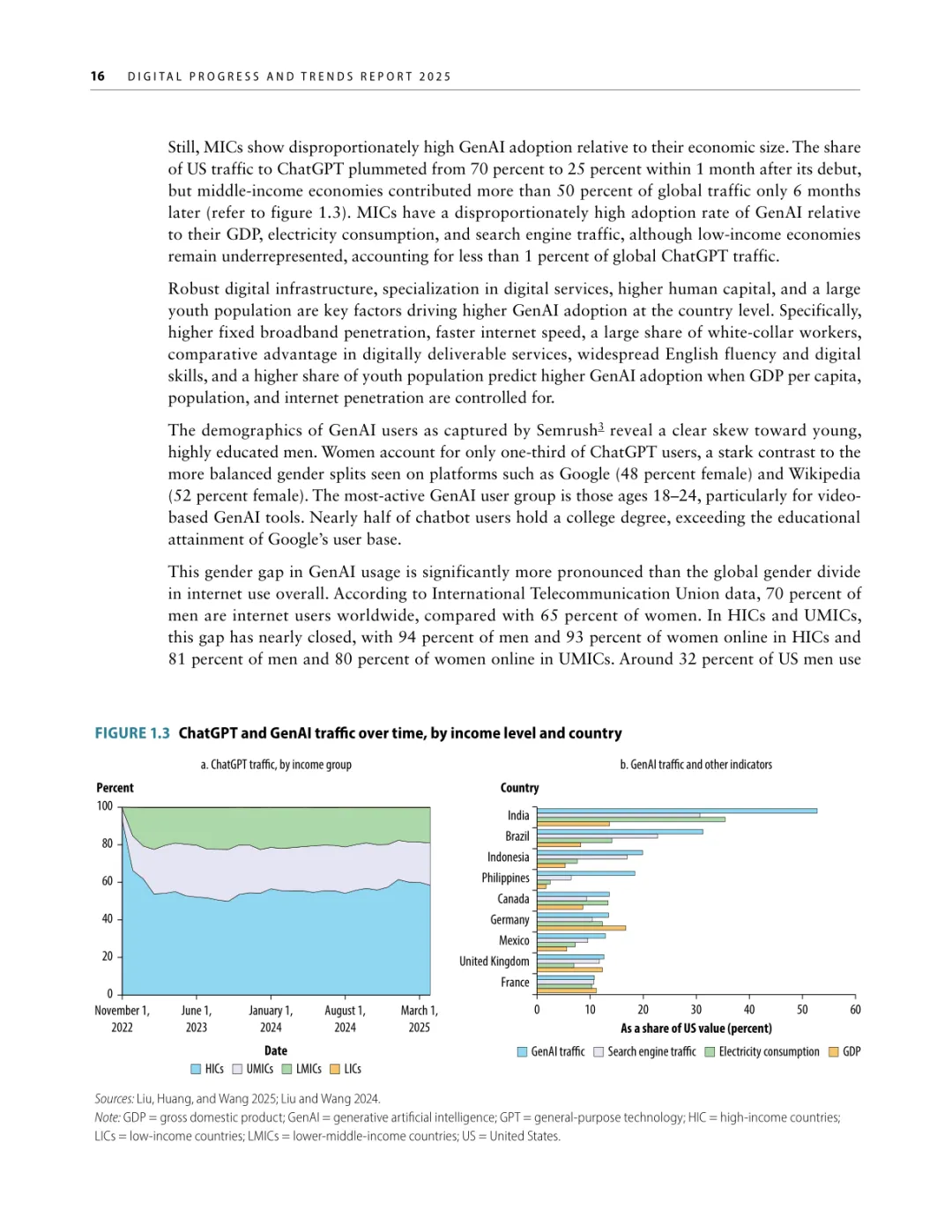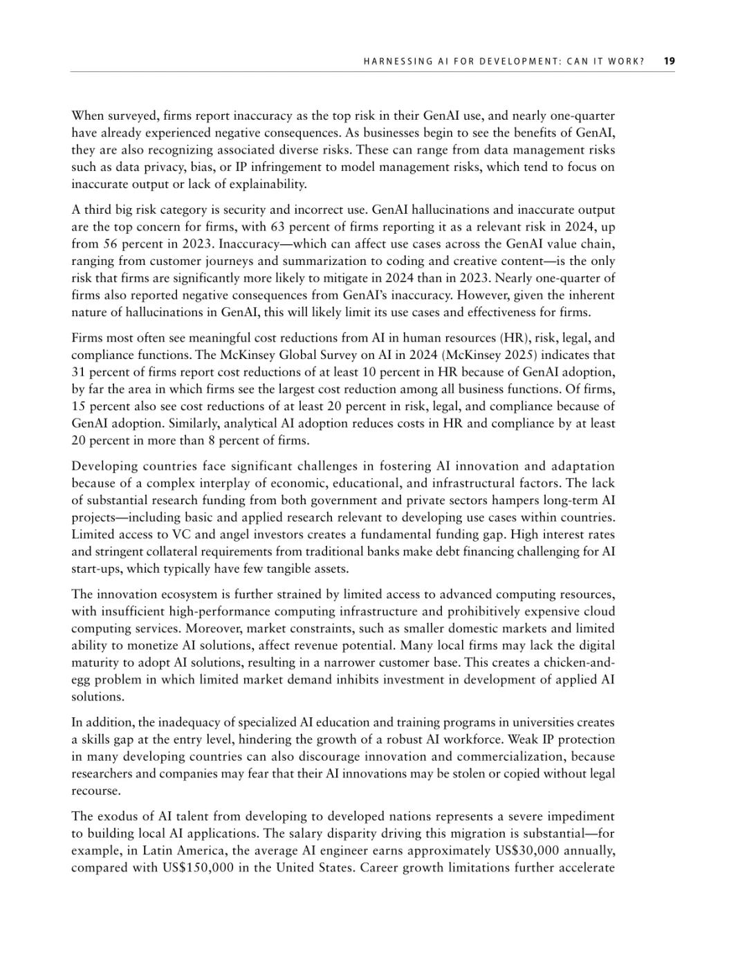 导读:报告聚焦人工智能发展基础建设,提出 “连接、算力、场景、能力” 四大核心支柱,为低收入和中等收入国家利用 AI 实现包容性增长提供战略指引。AI 技术正重塑全球经济与社会,但创新与应用存在显著全球差距。高收入国家主导 AI 模型研发与算力供给,占全球 87% 的云服务出口和 77% 的协同数据中心容量。低收入国家面临数字基础设施薄弱、数据资源匮乏、数字技能不足等多重障碍,基础数字技能普及率不足 5%,难以充分享受技术红利。报告强调,各国需根据自身 AI 就绪度精准投资四大支柱。低就绪度国家应优先完善网络与电力基础设施,提升设备可及性;中等就绪度国家需强化数字技能培训与本地化数据建设;高就绪度国家可聚焦前沿算力与自主模型研发。通过政策协同、跨境合作与风险管控,AI 有望成为缩小发展差距、推动可持续发展的关键力量。