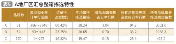 从表5可以看出A地厂区整箱拣选呈现特性为: