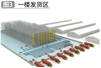 立库货架区:根据存量需求及堆垛机流量需求,规划10个巷道,约19360托盘位;